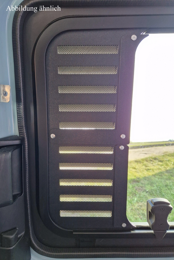 Zweiteiliges Lüftungsgitter für Mercedes Vito – passend für Carbest Schiebefenster | mit Moskitonetz & Regenschutz