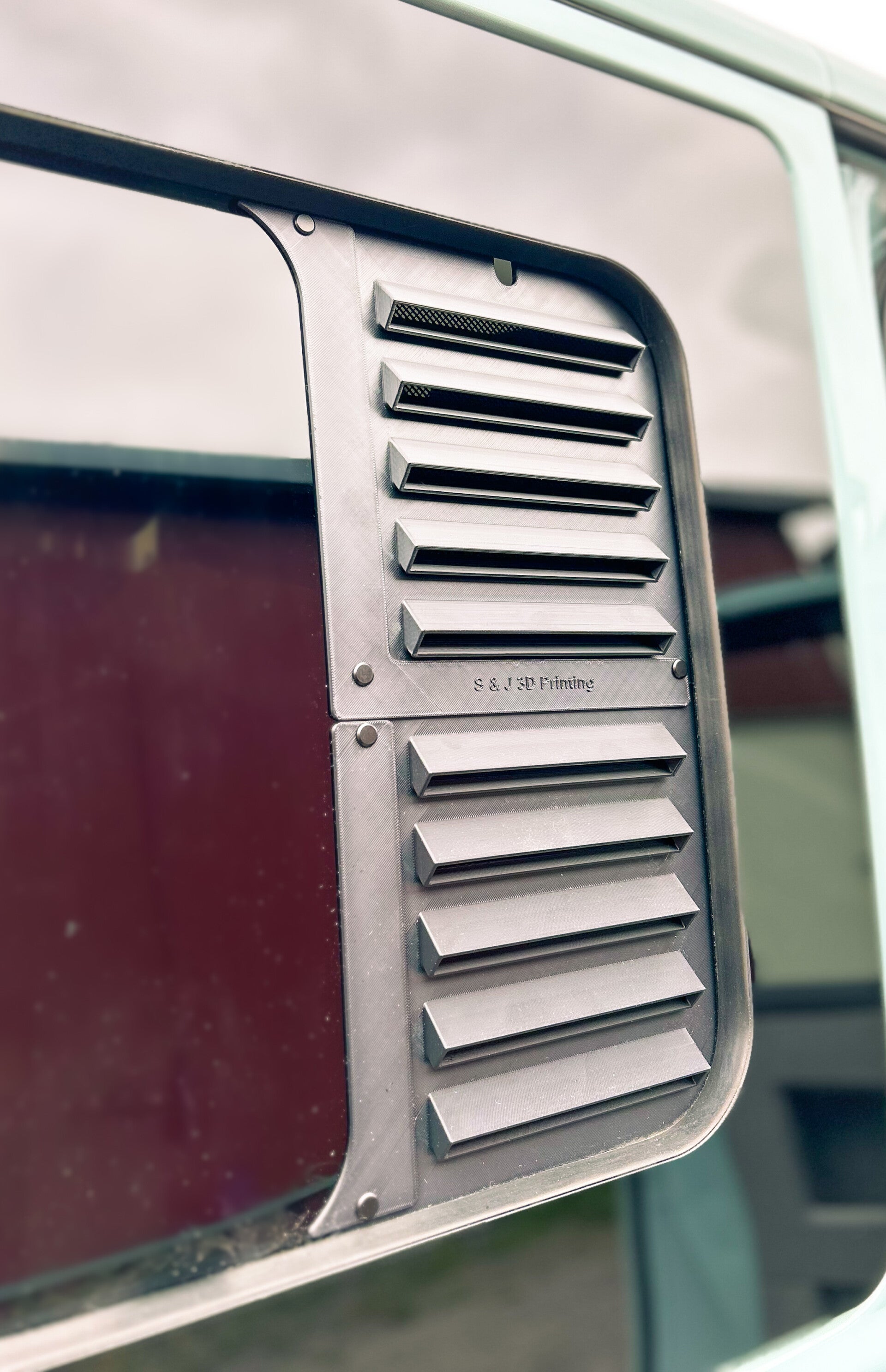 Zweiteiliges Lüftungsgitter für VW T5/T6 – passend für BTO und Kiravans Schiebefenster | mit Moskitonetz & Regenschutz